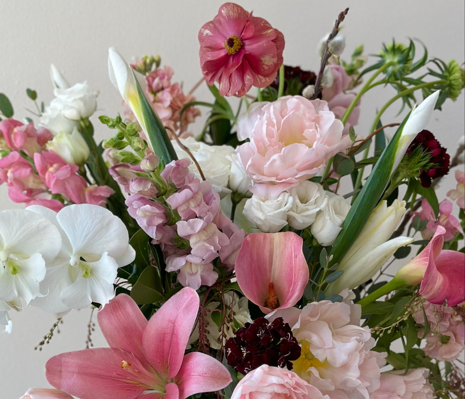 Bespoke designs differ in price and size, and the overall stem count and types of florals included will vary based on seasonal availability and vessel selection. Please feel free to call or email us any time to chat further about your Bespoke selection.