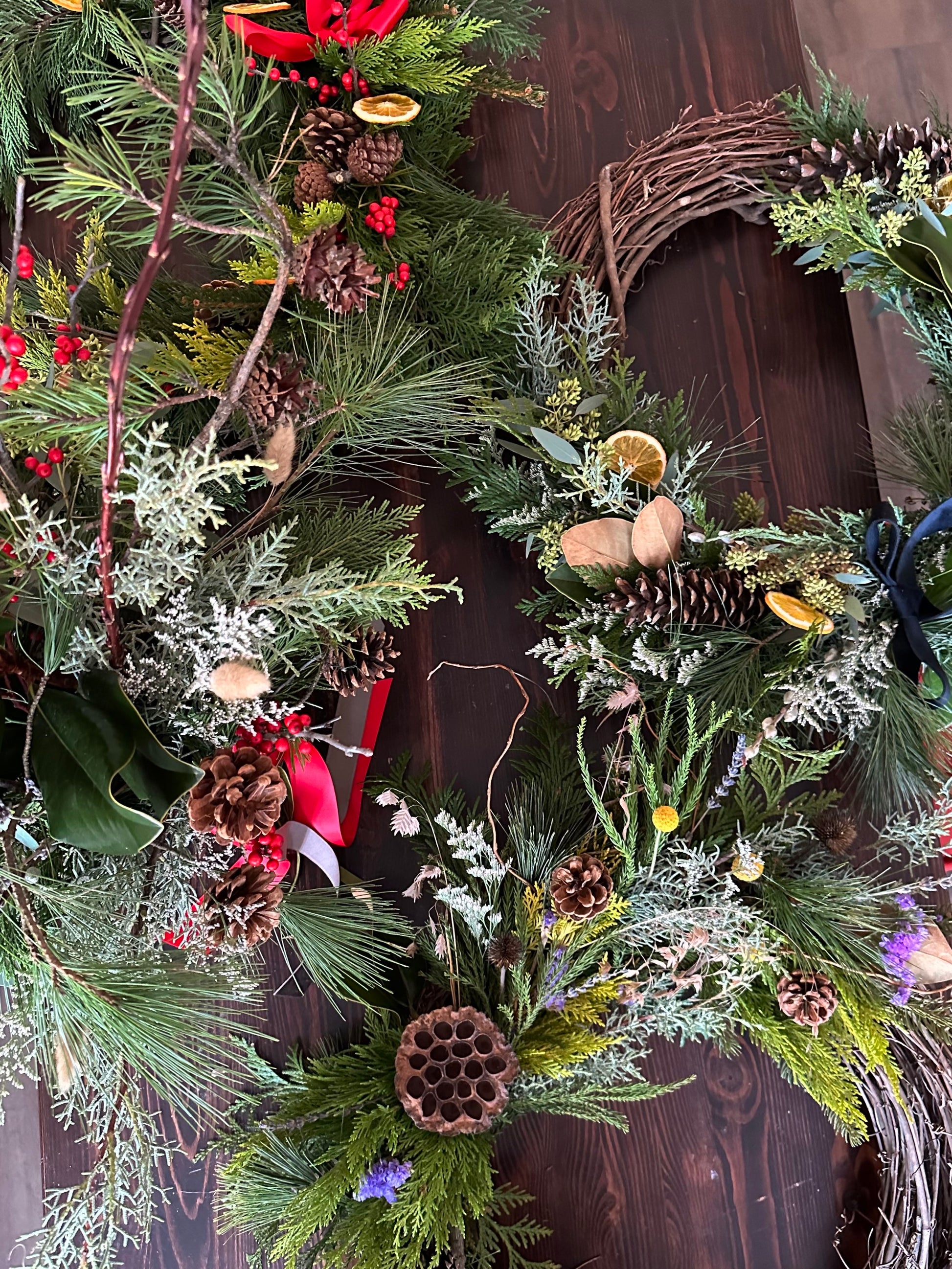 Celebrate the season with us in our cozy studio as we design festive and lush holiday wreaths to take home. Enjoy the scent of pine and cedar while you learn real floristry skills to craft a wreath featuring locally harvested winter evergreens, dried textures, luxe ribbon, and other fun decorative elements. All tools and materials are provided, with guidance from a Little Acre designer. A joyful way to welcome the holidays!