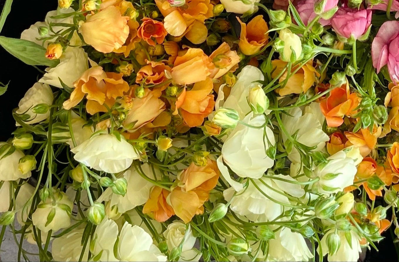 Take a peek at what’s in season right now. Local flowers include tulips, anemones, ranunculus, poppies, daffodils, hyacinth, stock, delphinium, snapdragons, lilies, and flowering branches - just to name a few!