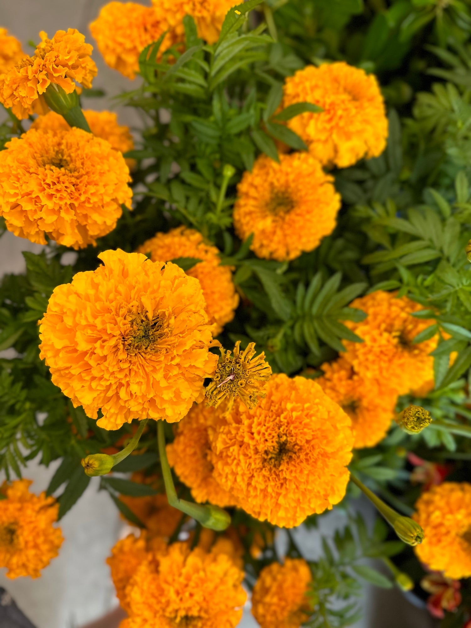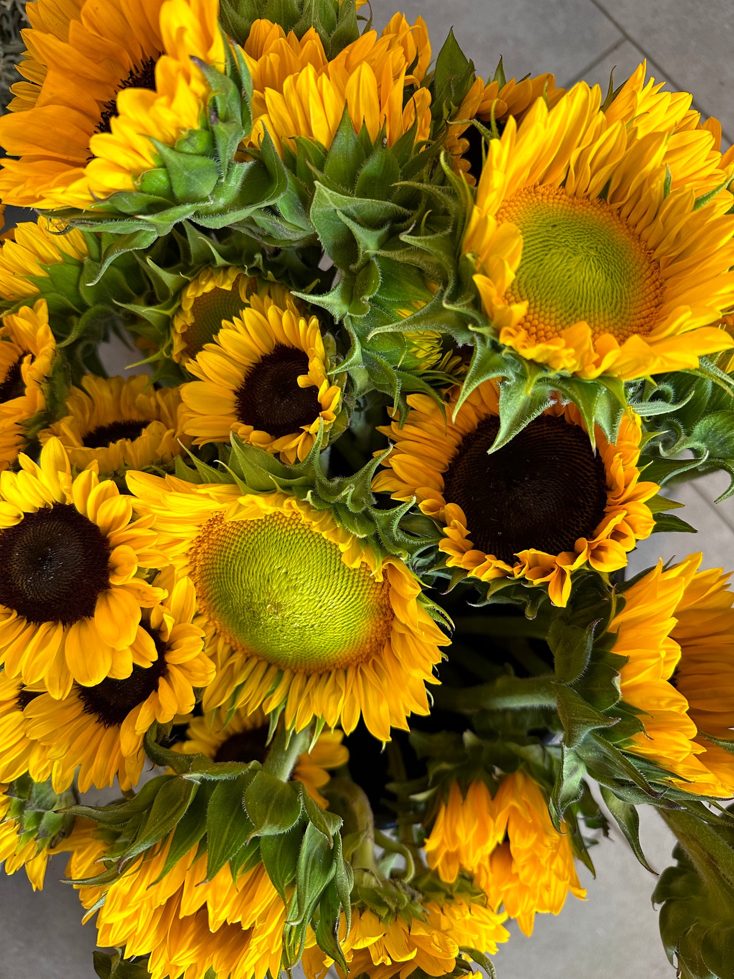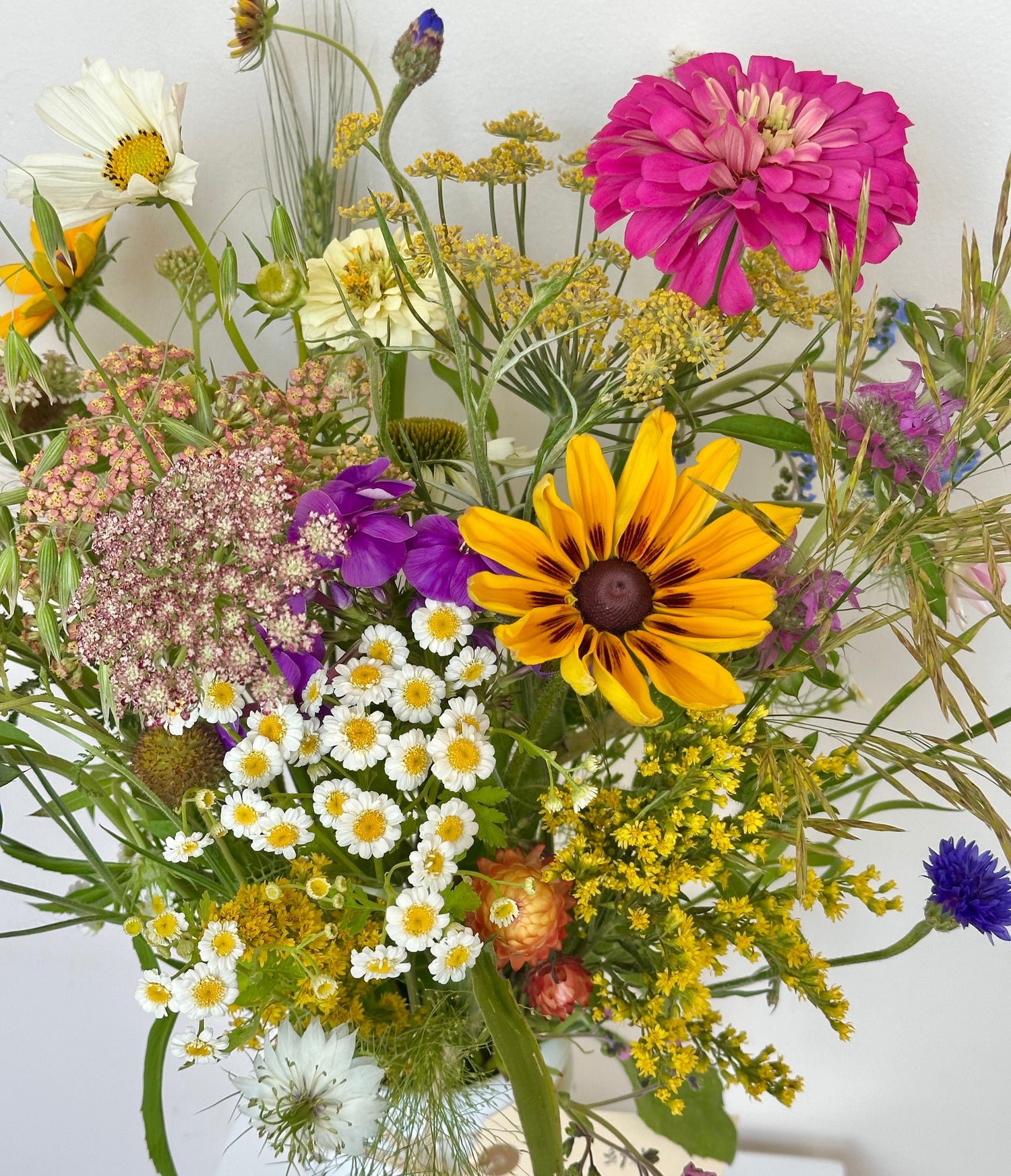 Take a peek at what’s in season right now. Current local flowers include dahlias, sunflowers, lisianthus, statice, snapdragons, yarrow, feverfew, laceflower, rudbeckia, mint, lavender, and scabiosa - just to name a few!